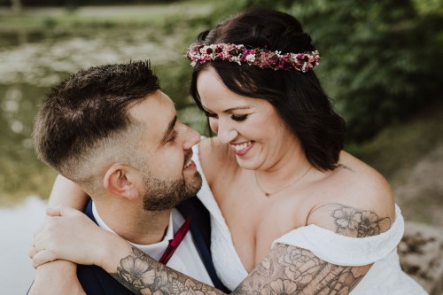 Wieder einmal in diesem Jahr machte Corona einem Brautpaar einen Strich durch die Rechnung. Statt großer Party mit allen Freunden heirateten Caro und Sven nur im engsten Kreis der Familie. Und eigentlich – so war der Plan – sogar ohne Fotografen. Gut, dass Caro mich schon oft auf Hochzeiten und zu anderen Gelegenheiten erlebt und empfohlen hat und gut, dass an diesem Tag grandioses Wetter war und gut, dass Sven rein gar nichts davon wusste, dass ich ganz heimlich von seiner Verlobten gebucht wurde und er Teil eines Überraschungs-First-Look-Shootings wurde. Denn sonst gäbe es nun nicht diese schönen Bilder der beiden, mit denen sie sich ihr Leben lang an diesen einen Tag zurückerinnern können.