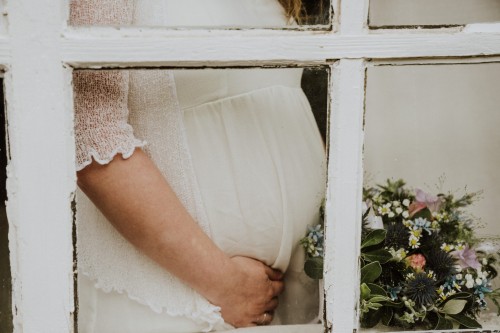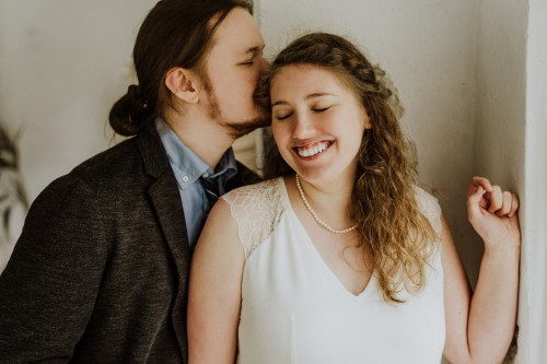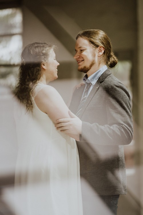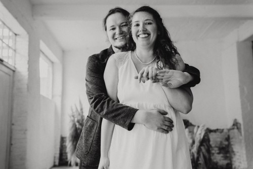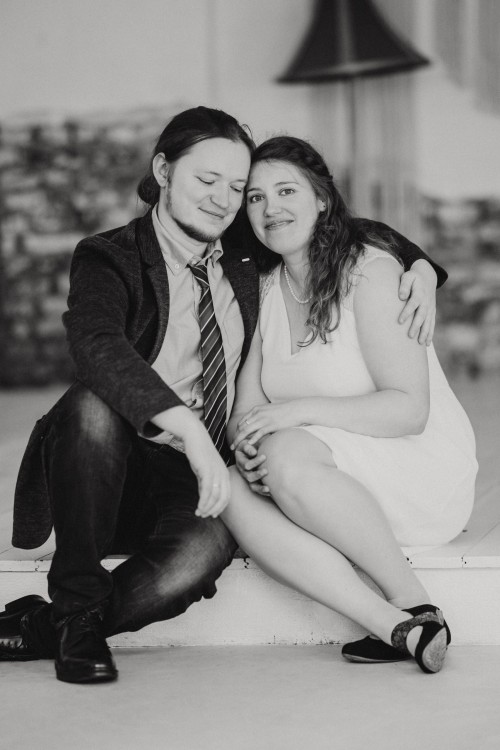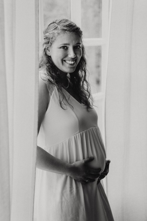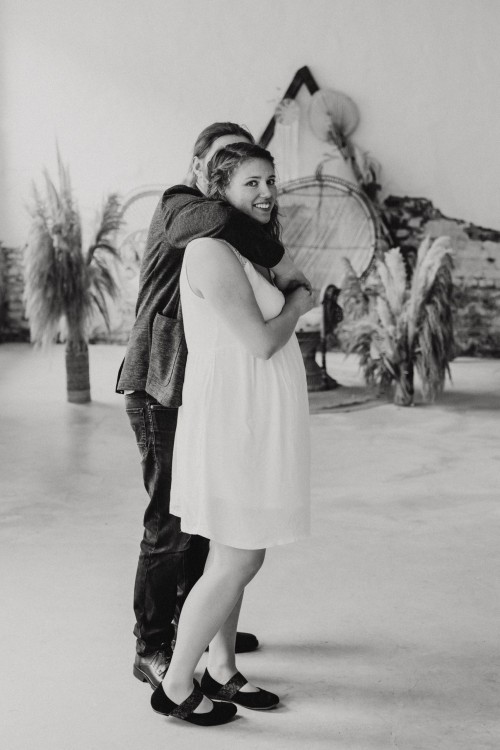Ihr wisst, üblicherweise bin ich ein großer Fan von Outdoor-Fotos, aber es gibt Fälle, in denen muss mein Kopf eine Ausnahme machen. Und so fuhren wir mit Babybauch und sommerlich kurzem Brautkleid ganz spontan in ein kleines, aber umso schöneres Tageslichtstudio in Gelsenkirchen.