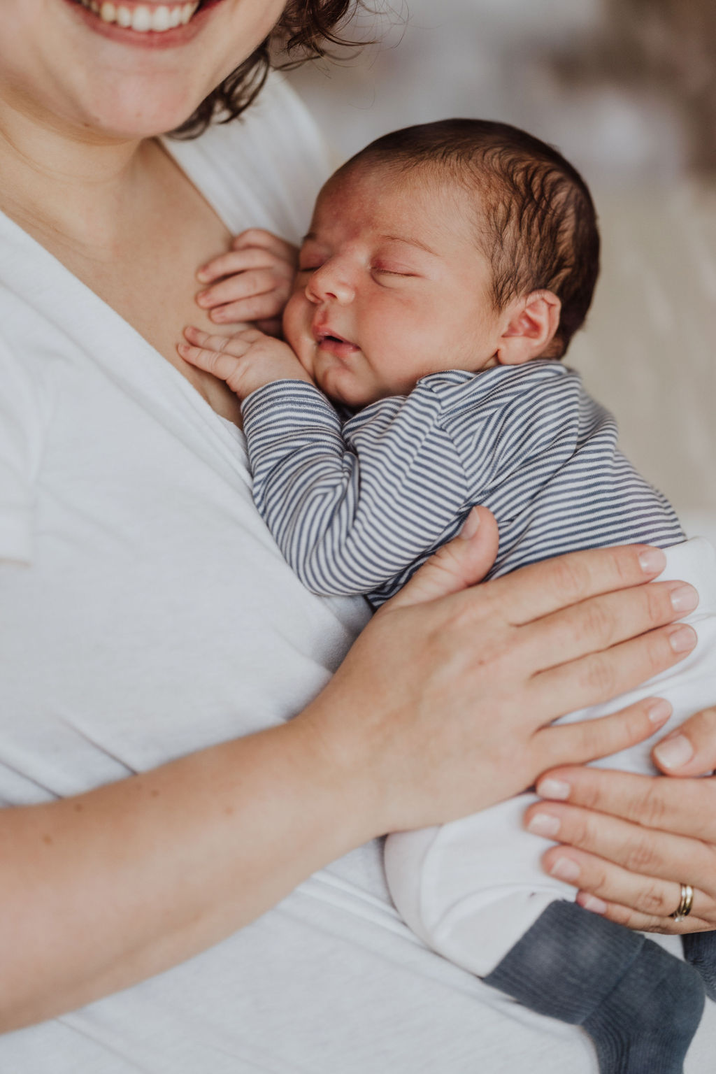 Gemütliches Familienshooting Zuhause mit dem neuen Familienmitglied Theo