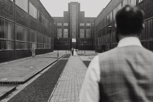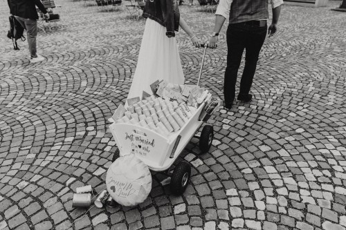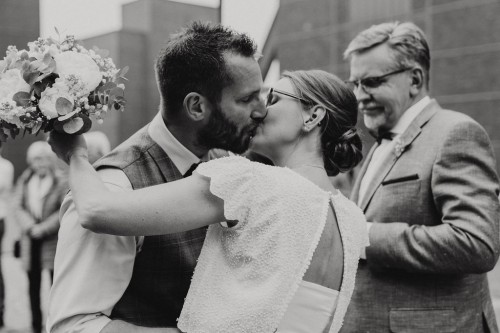 Die wirklich wunderschöne Braut wurde von ihrem Papa, Arm in Arm, zu einem kurzen First-Look mit Mirko geleitet. Zwischen den imposanten Welterbe-Gebäuden wartete er bereits mit seinem Trauzeugen auf seine Zukünftige.