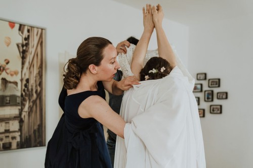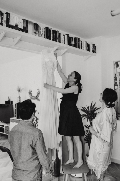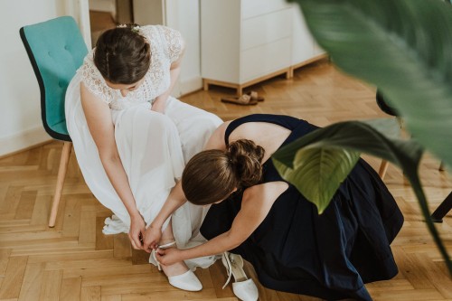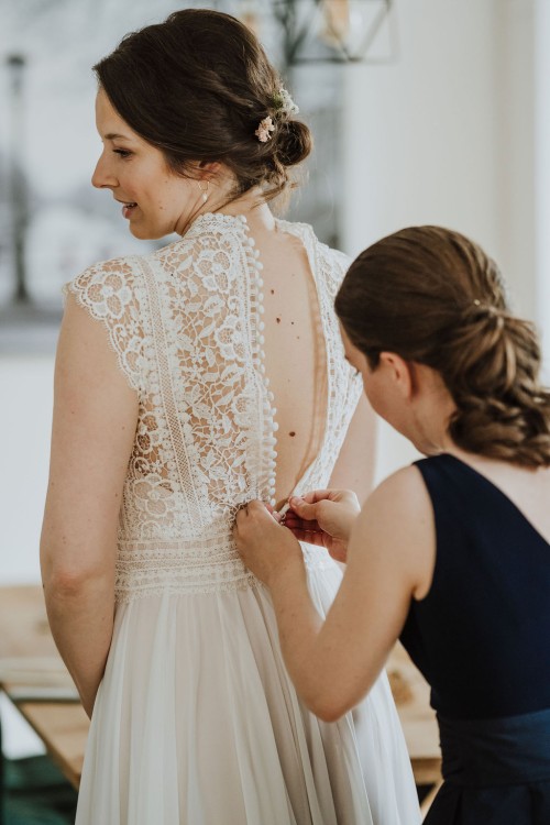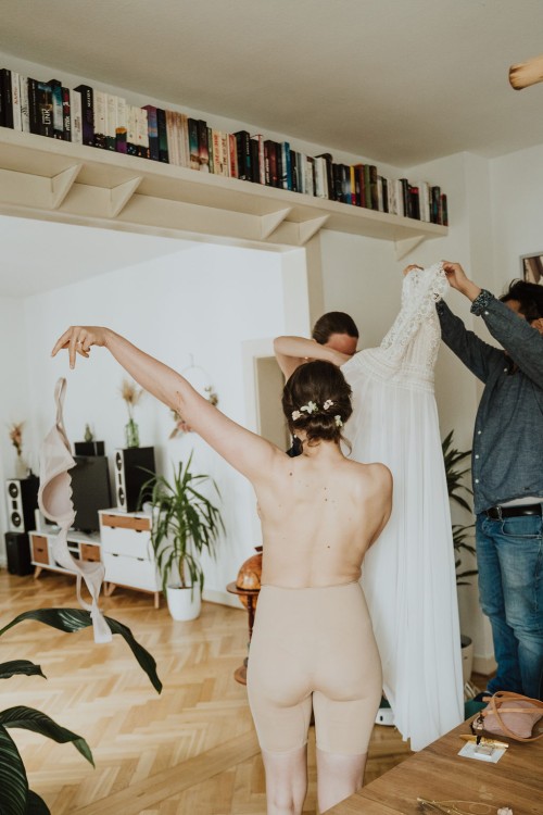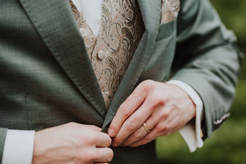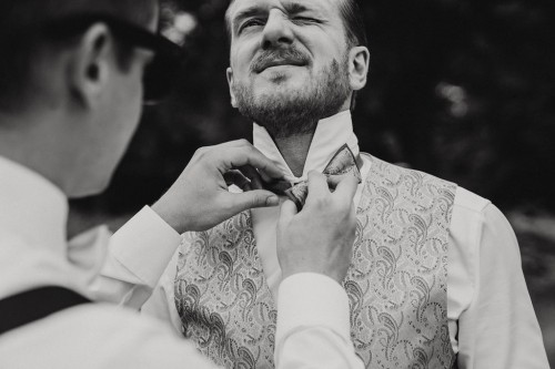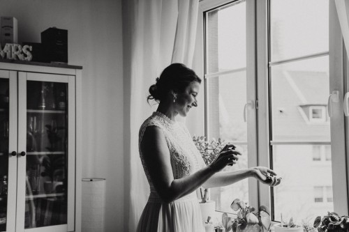 Eigentlich wollte Vivi kein Gettingready, aber Jan und ihre Trauzeugin haben sie überzeugt und so haben wir zumindest ein kleines Gettingready gemacht. Ihre Brautfrisur und das Make-up hat sie schon vorab in der „Puderdose“ in Essen-Rüttenscheid bekommen. Jan hätte auch gern ein Gettingready gehabt, aber der Zeitplan war leider sehr straff. Für ein mini mini Gettingready mit seinen beiden Trauzeugen auf dem Parkplatz hat es noch gereicht 😉