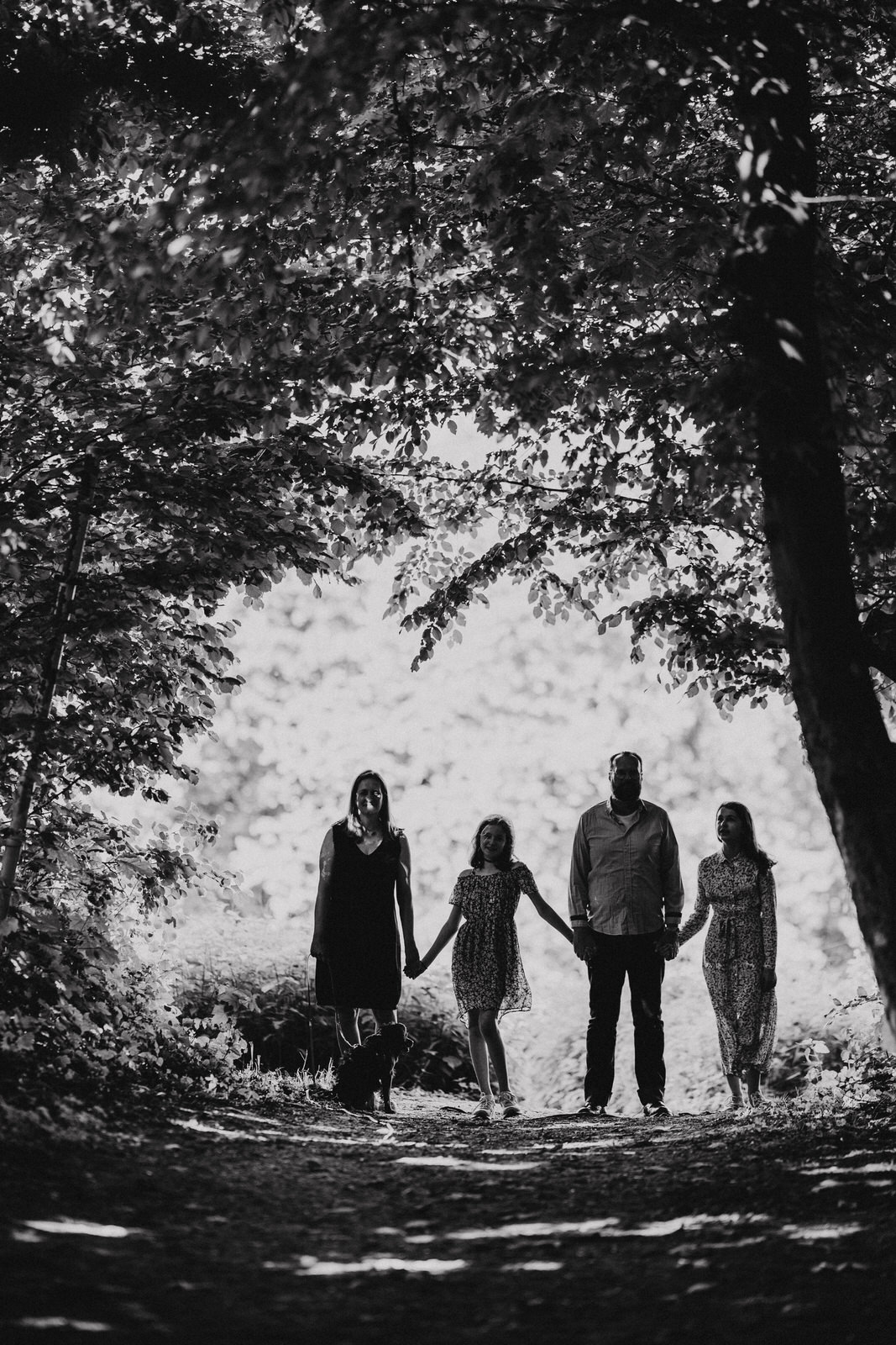 Diese 4-köpfige Familie habe ich in Mülheim getroffen. Direkt hinter dem Zuhause der Vier plus Hund 😉 liegt ein großer Wald mit einer tollen Wiese und einem super Ausblick. Eigentlich haben die Vier jedes Jahr ein Familienshooting gemacht und die Bilder im Wohnzimmer aufgehängt, aber dann kam Corona … Jetzt ist das letzte Shooting 2 1/2 Jahre hier, die alte Fotografin – zu meinem Glück – in Rente und ihre beiden Mädels sind Teenies. Ich durfte also aktuelle Fotos machen und wir haben auch viele Portraits gemacht.