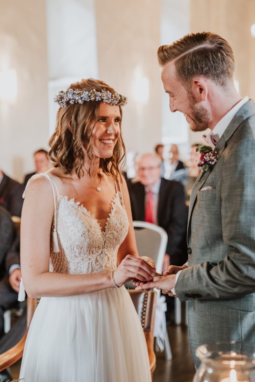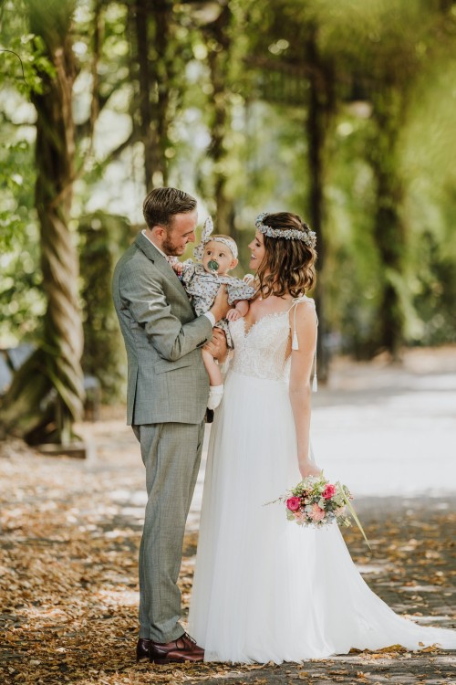 Die standesamtliche Trauung von Sarah und Dustin verwandelte den Rittersaal des Schloss Broich in Mülheim in eine Kulisse voller Zauber. Das strahlende Sommerwetter ließ die Atmosphäre noch magischer erscheinen, als das Paar von ihren Gästen im romantischen Schlosspark empfangen wurde. Inmitten dieser Idylle entstanden berührende Augenblicke während des Paarshootings und Familienfotos mit der kleinen Zoe.
